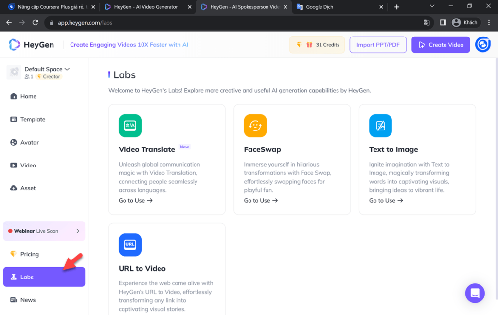Hơn nữa, bạn cũng có thể truy cập vào tab Labs để khám phá thêm nhiều tính năng thú vị khác của HeyHen.